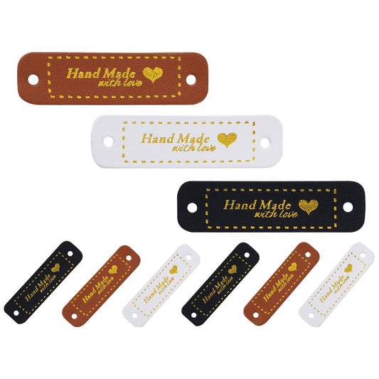 PU Leather Handmade Tags for Crochet, Knitting, Hats, DIY Crafts Sew-On Labels with Holes, 75 Tags