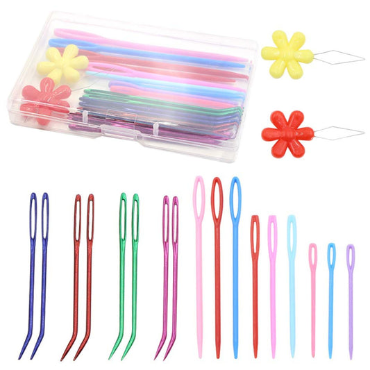 19Pcs Yarn Needles Set with Bent, Darning, Large-Eye Plastic Needles for Knitting, Crochet, and Sewing