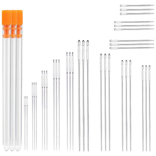 Large Eye Hand Sewing Needles Set with Threaders and Bottle Container for Yarn and Embroidery