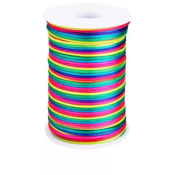 - This black nylon satin cord is 2 mm thick and 87.5 yards (80 m) long, providing consistent thickness for a variety of craft projects.
