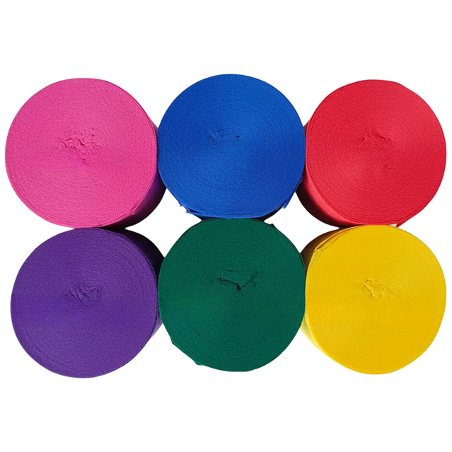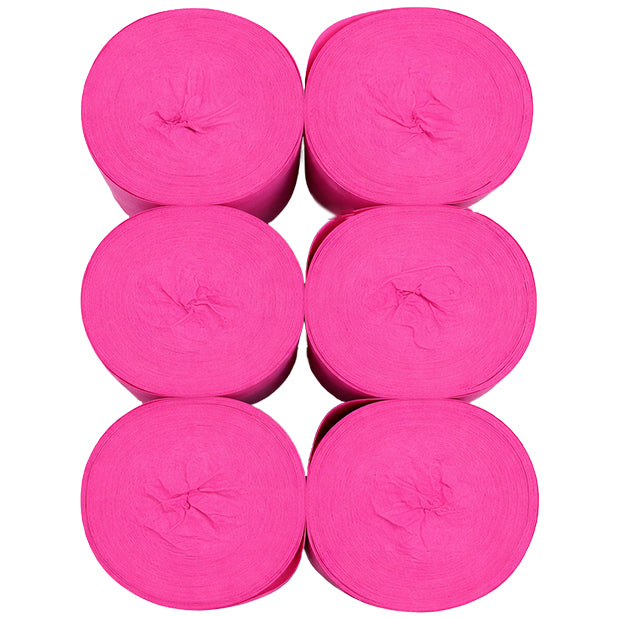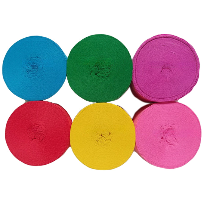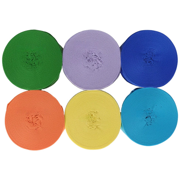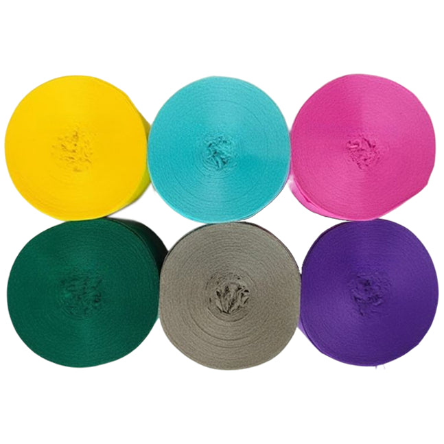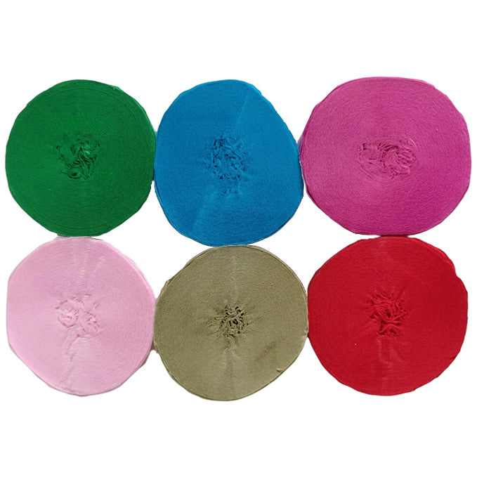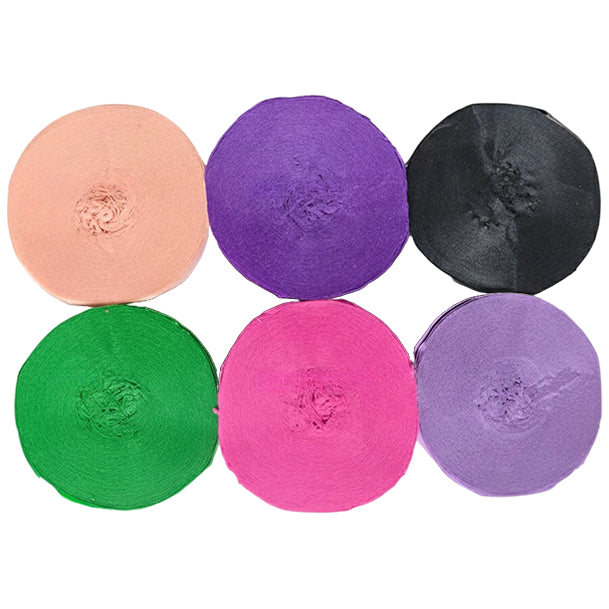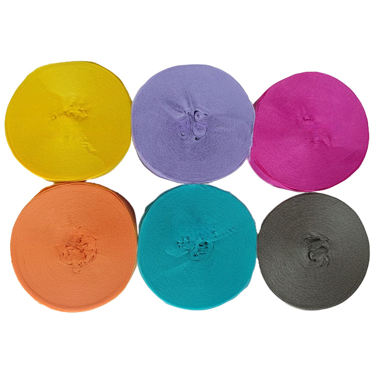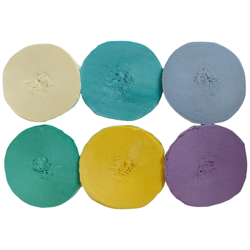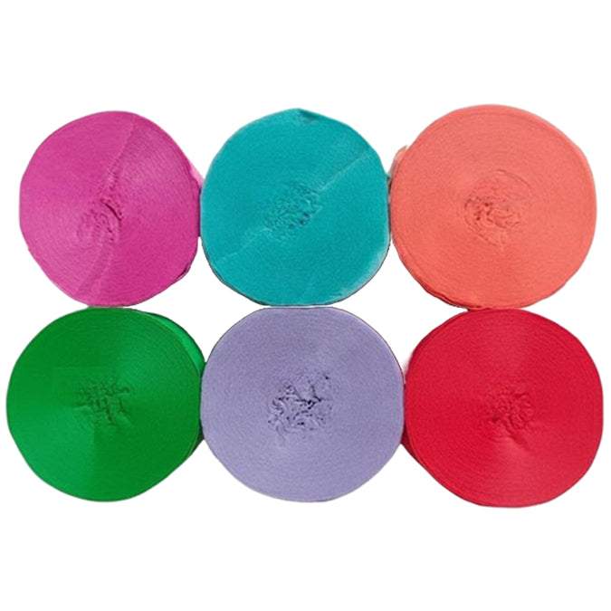This 6-pack crepe paper streamer set features six rolls measuring 82 feet each for a total length of 492 feet, with a 1.77 inch width ideal for birthday, wedding, baby shower, theme party, and event decorations. Crafted from thick crepe paper with a sturdy texture, the streamers provide dependable hanging strength and a smooth decorative finish. The pre-rolled design allows easy use for ceiling displays, spiral accents, backdrops, and room styling, adding vibrant color to party spaces. Suitable for party decor, DIY crafts, and art projects, the streamers pair well with other decorations; handle gently to prevent over-pulling.