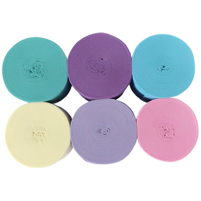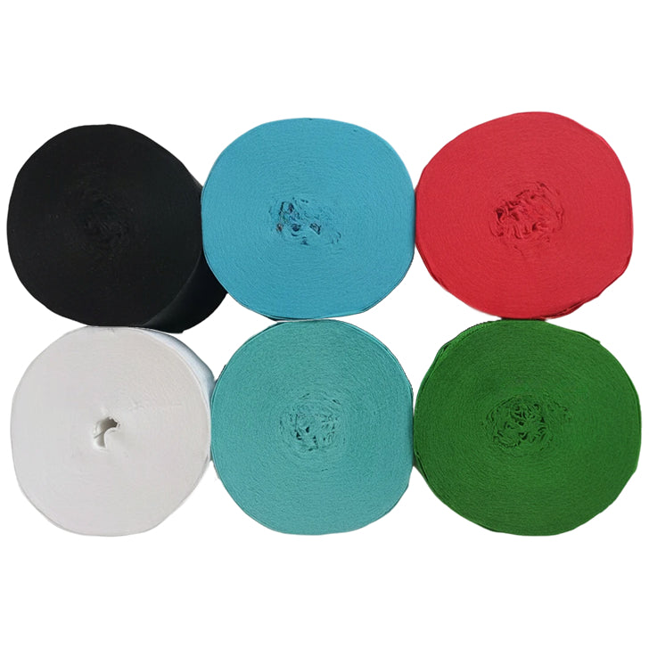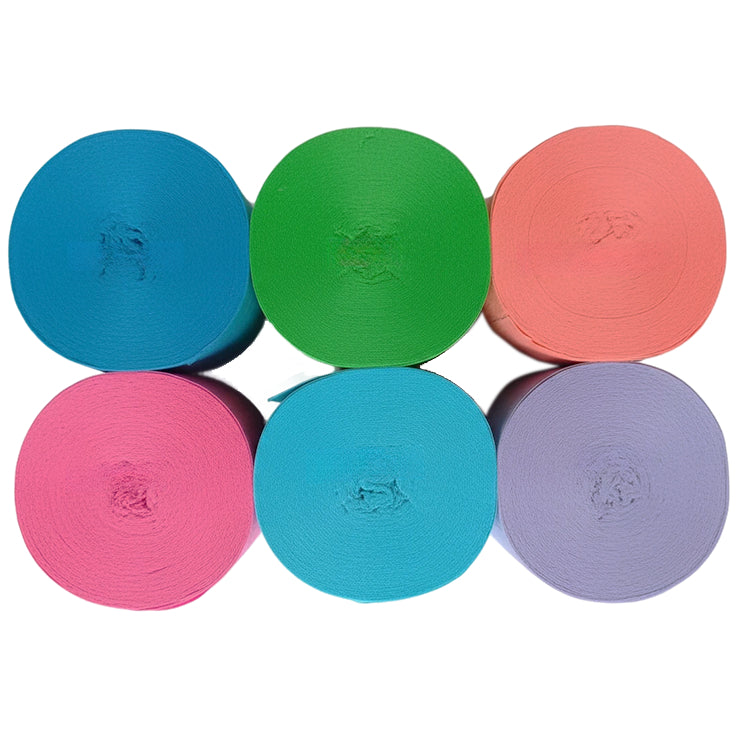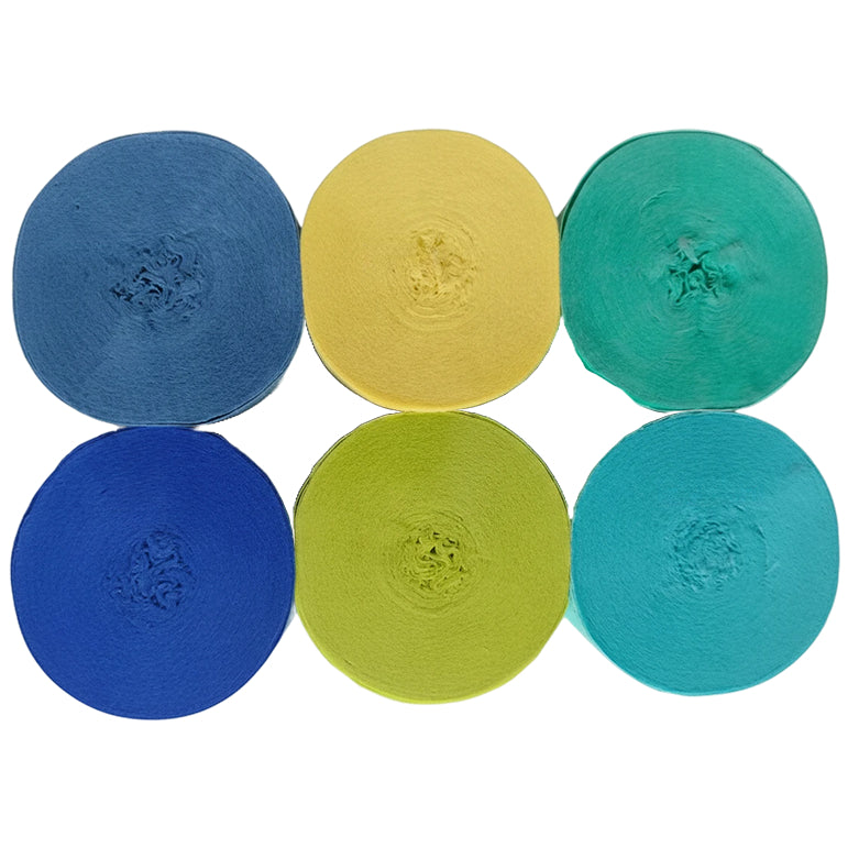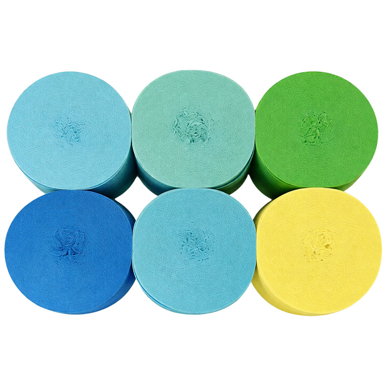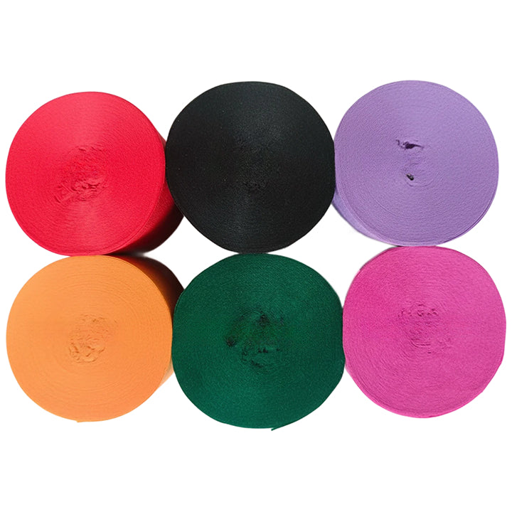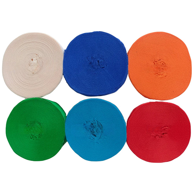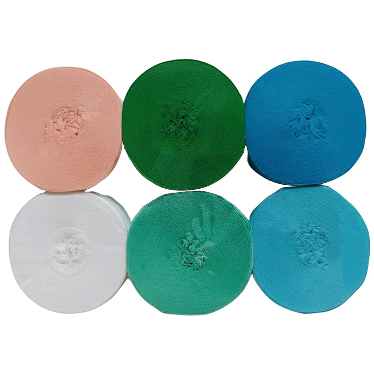 This 6-pack crepe paper streamer set features six rolls measuring 82 feet each for a total length of 492 feet, with a 1.77 inch width ideal for birthday, wedding, baby shower, theme party, and event decorations. Crafted from thick crepe paper with a sturdy texture, the streamers provide dependable hanging strength and a smooth decorative finish. The pre-rolled design allows easy use for ceiling displays, spiral accents, backdrops, and room styling, adding vibrant color to party spaces. Suitable for party decor, DIY crafts, and art projects, the streamers pair well with other decorations; handle gently to prevent over-pulling.