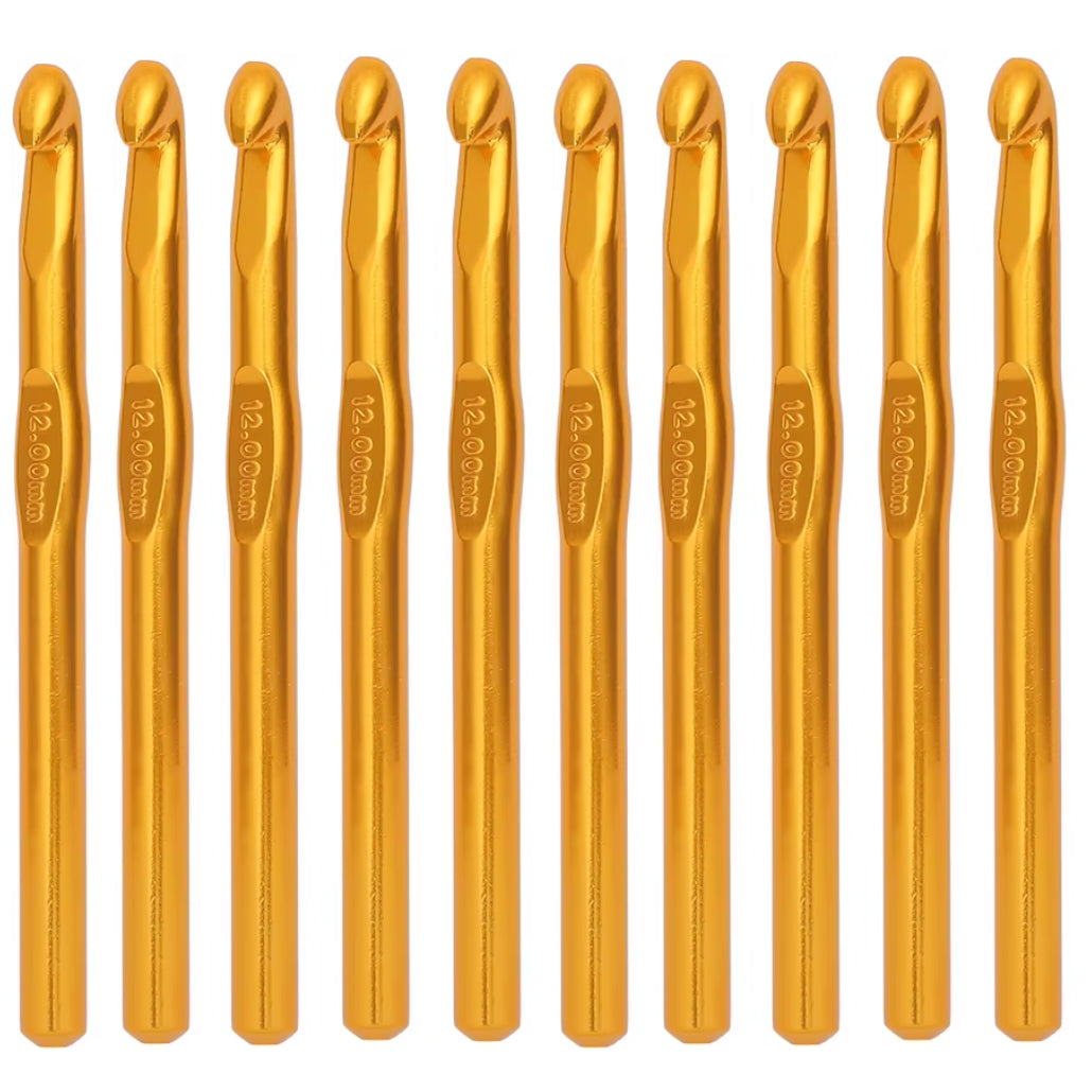 The features 10 durable, lightweight aluminum crochet hooks with a smooth finish for comfortable use. Designed with an ergonomic flat middle section, these hooks ensure a secure grip, minimize hand fatigue, and enhance precision. Perfect for knitting and crocheting a variety of projects such as blankets, sweaters, hats, scarves, and gloves, they are not suitable for thick or oversized wool.