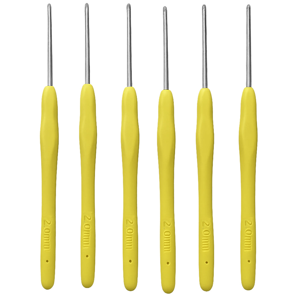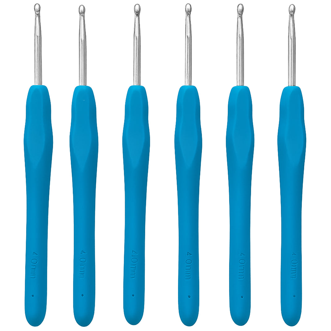 This set includes 6 crochet hooks crafted from lightweight aluminum with soft, ergonomic rubber handles, each measuring about 14 cm (5.5 inches) and marked with clear sizes for easy identification. The smooth polished finish allows yarn to glide effortlessly without snagging or splitting, providing a faster and more comfortable crocheting experience. The non-slip grip handle helps reduce hand fatigue, making it suitable for both beginners and experienced users working on long projects. Perfect for crafting blankets, hats, scarves, gloves, pet clothes, and other DIY yarn creations, it also makes a thoughtful gift for crochet enthusiasts of all ages.