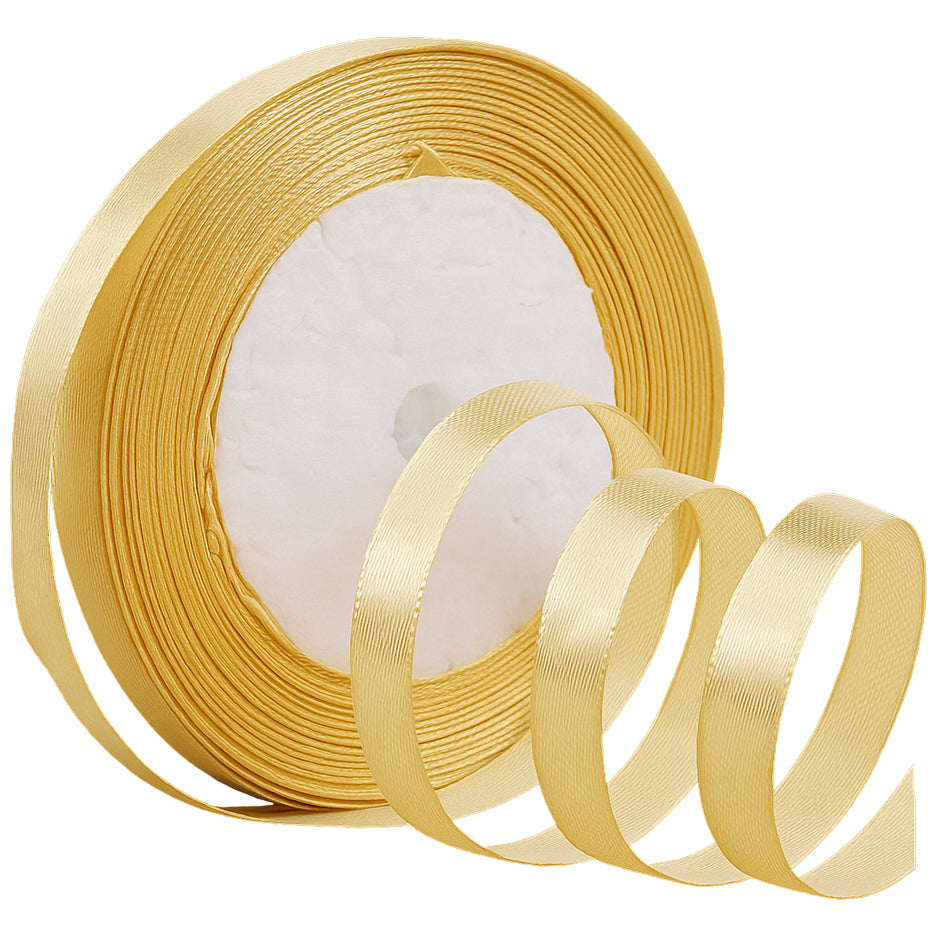 - This satin ribbon measures 3/8 inch wide and 23 yards long, made from 100% polyester with a smooth single face finish.