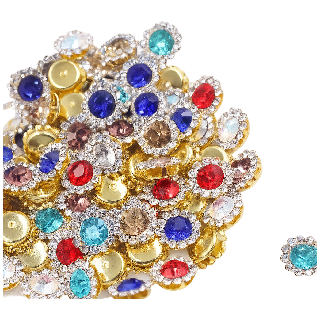 This set includes 100 pieces of 12mm sunflower-shaped glass rhinestones with a durable metal claw base, ideal for enhancing clothes, shoes, accessories, and various craft projects. Made from high-quality glass with precise cuts and brilliant shine, each rhinestone adds a sparkling, elegant touch similar to real crystals. Designed with pre-drilled holes for easy sewing, the secure claw base keeps the stones firmly in place for long-lasting use. Perfect for decorating dresses, handbags, hats, jewelry, and DIY crafts, these rhinestones provide a stunning finish for any creative project.